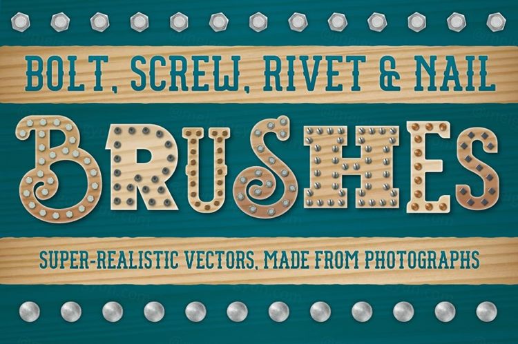图穷联素材库 » 螺栓、螺钉、铆钉和指甲PS笔刷素材 Bolt , Screw