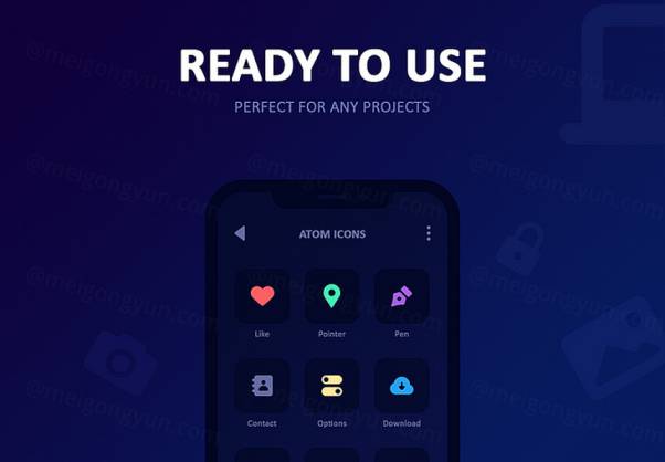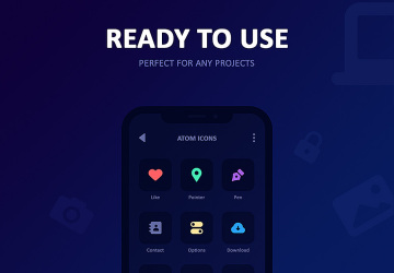 图穷联素材库 » 蓝色移动手机应用程序界面矢量图标集ATOM Icons