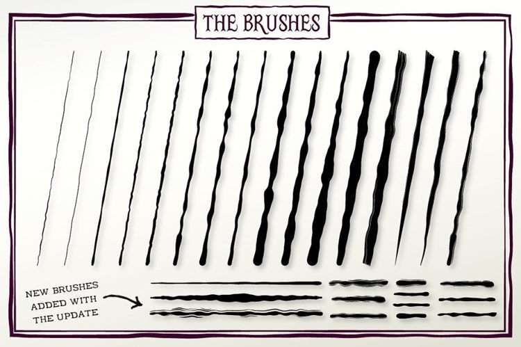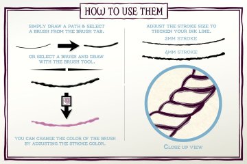 如果您厌倦了使用标准的Illustrator笔划,那么这些笔刷适合您!我创建它们是为了给艺术品一个手绘的墨水外观。