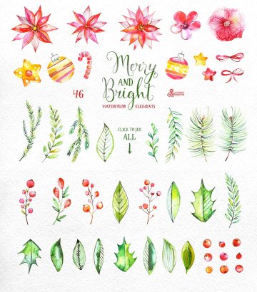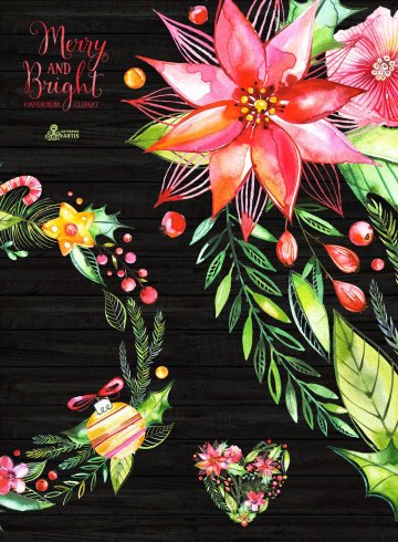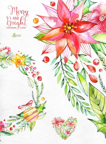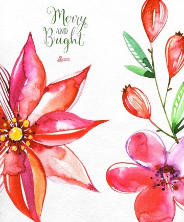 欢快明亮水彩花卉插画 Merry And Bright. W