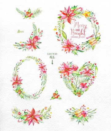 图穷联素材库 » 欢快明亮水彩花卉插画 Merry And Bright. W