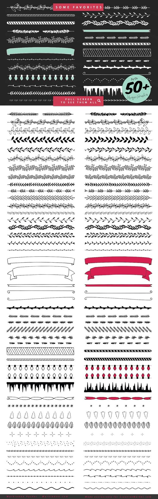 50多个完美无缝插画画笔