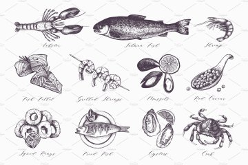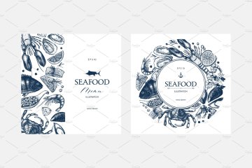 图穷联素材库 » 传统海鲜插图和菜单矢量设计 Vector Seafood M