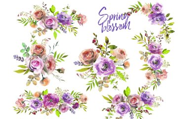 图穷联素材库 » 春季花开水彩花卉插画 Spring Blossom Wate