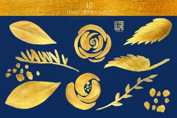 图穷联素材库 » 裸色与黄金水彩花卉设计素材 Nude gold. Wat