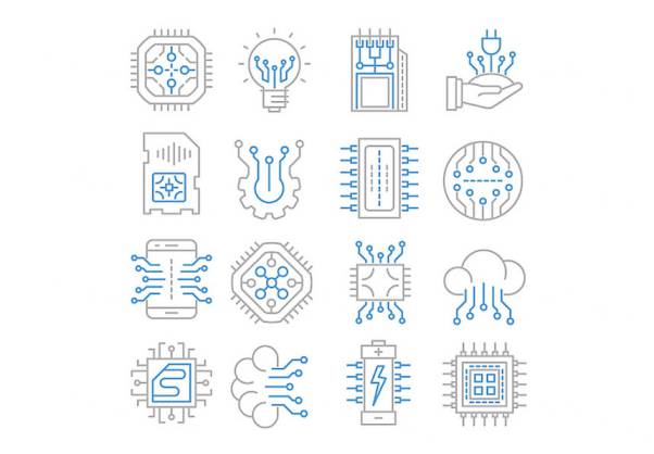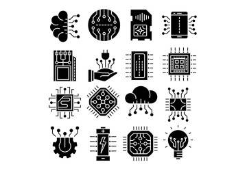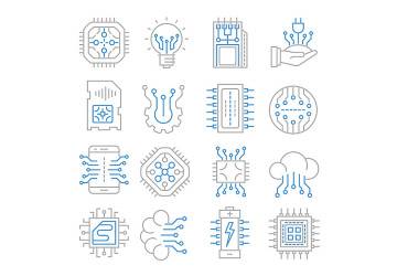 图穷联素材库 » 16个电子设备芯片高科技矢量图标集Electronics Icons