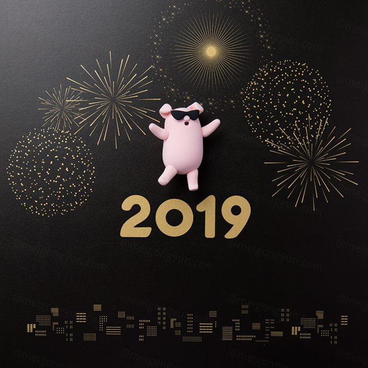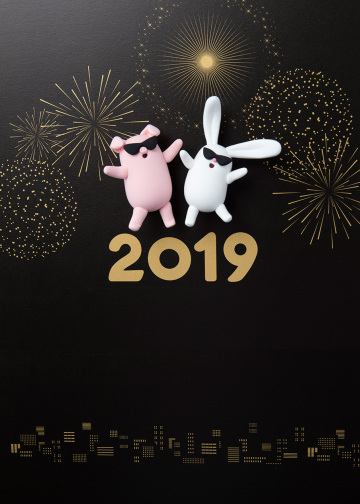 图穷联素材库 » 超酷2019黑金新年猪猪侠和兔子高清素材