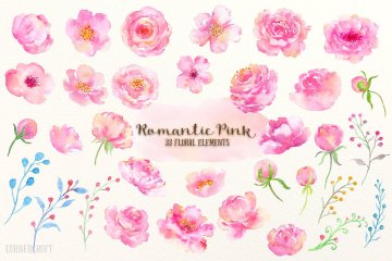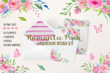 浪漫粉色水彩设计套装 Design Kit Romantic
