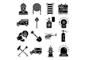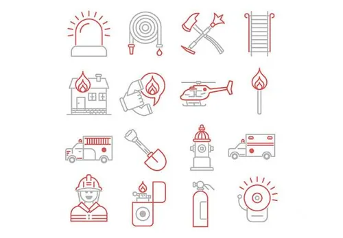 图穷联素材库 » 16个消防员和消防部门矢量图标集Firefighter Icons