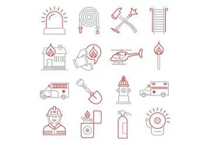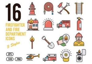 16个消防员和消防部门矢量图标集Firefighter Icons