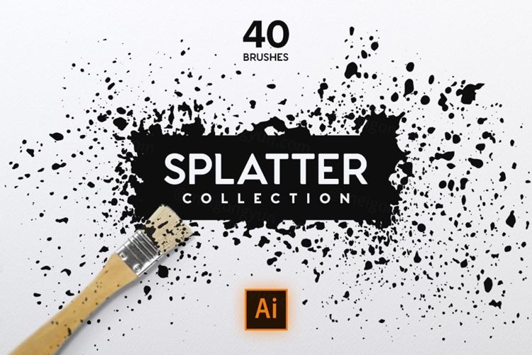 一套高品质的中国风Illustrator的40个矢量毛笔笔墨飞溅画笔笔刷大集合,可以用它们来设计毛笔字汉字哦