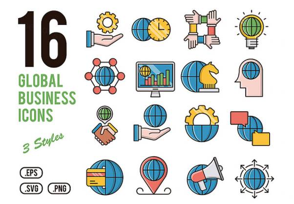 图穷联素材库 » 16个全球商业金融业务矢量图标集Global Business Icons