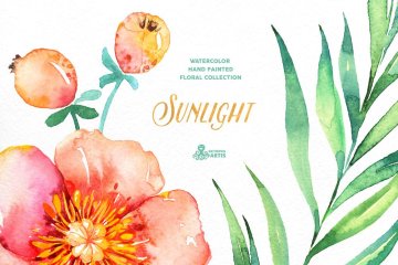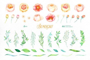 46款高质量手绘水彩花卉剪贴画 Sunlight. Flor