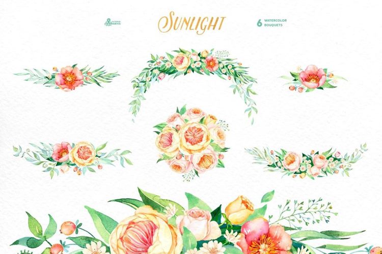 图穷联素材库 » 46款高质量手绘水彩花卉剪贴画 Sunlight. Flor