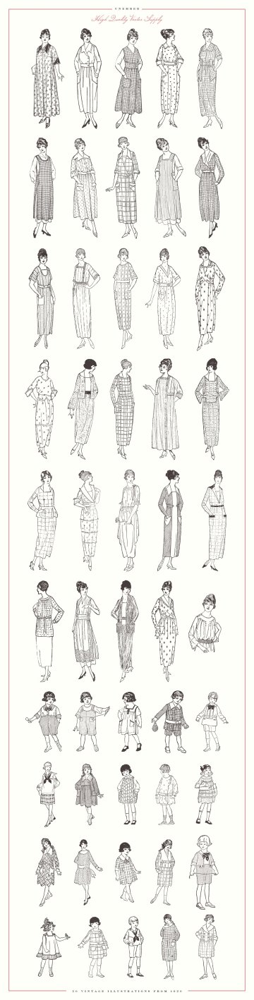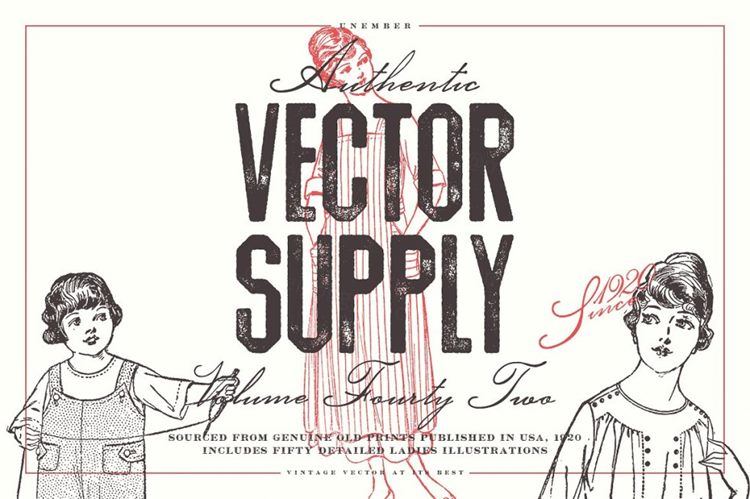 Unember:Vector Supply Volume 42包含50个正宗的复古女性插图,源自1920年在美国出版的真正复古版画。