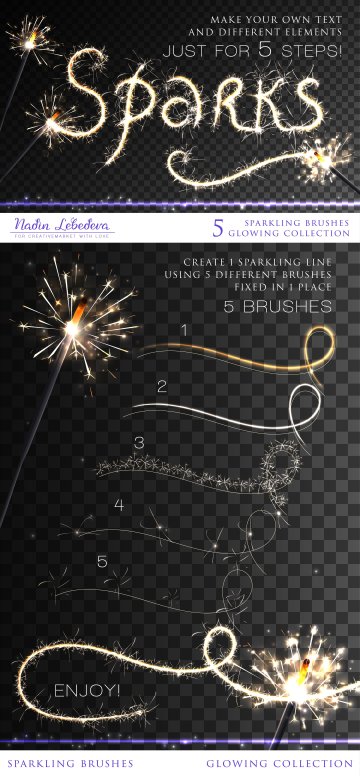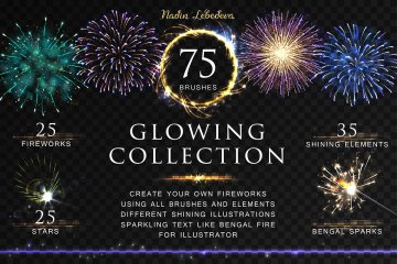高品质新年必备的烟火画笔素材包VECTOR GLOWING