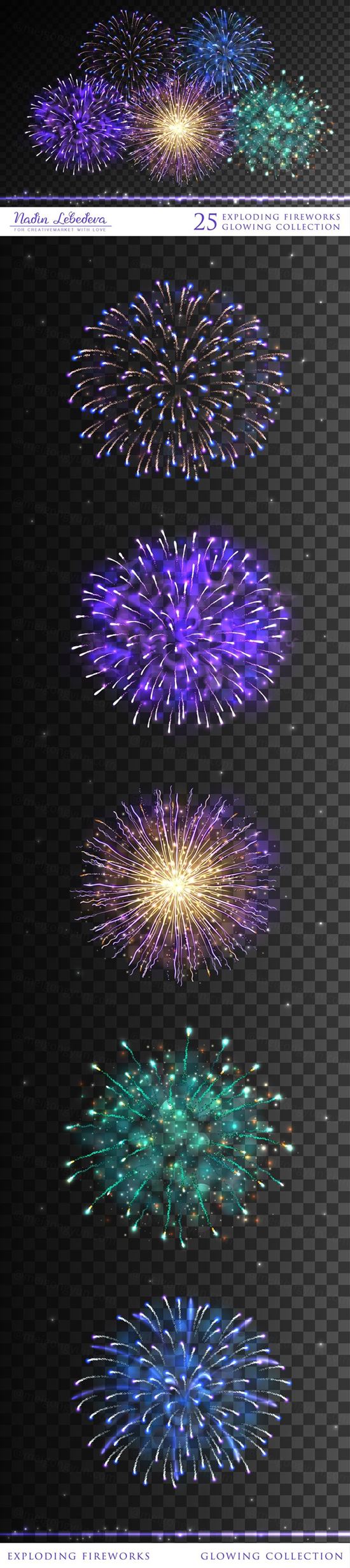 图穷联素材库 » 高品质新年必备的烟火画笔素材包VECTOR GLOWING