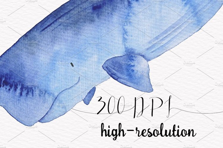 图穷联素材库 » 鲸鱼和海洋动物水彩插画 Watercolor Whales
