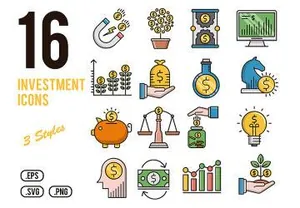 16个金融数据投资分析矢量图标集Investment Icons