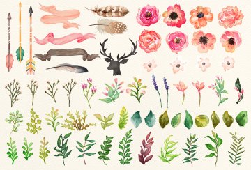 你得到了什么? 76 PNG(300dpi)手绘水彩图形元素,每个元素上单个png与透明背景。