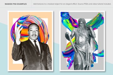 6个示例PSD显示如何使用带有蒙版照片的纹理来创建充满活力的现代设计
