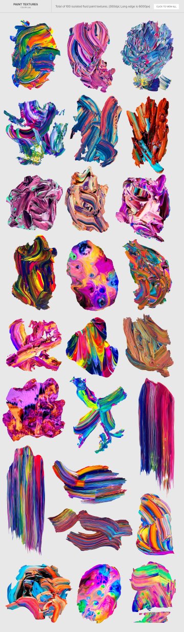 流畅的油漆纹理有4种不同的风格:颜色,黑色和白色,火和铬。所有这些都在透明背景上,这使得使用蒙面照片轻松工作并创建非常酷的分层效果。(PSD示例和视频教程展示了如何执行此操作。)由于纹理是高分辨率的,因此它们可以很好地工作并为任何项目带来独特的感觉。使用完整的作品或接近使用细节。