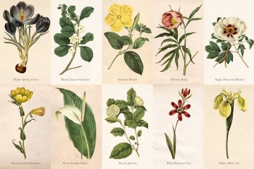 这组合集包括了50款漂亮的古典花卉植物图形,是许多设计项目的完美素材,这些图形来自19世纪早期的古书。每一个都以png格式提供给您,具有300 dpi的透明背景,以及在最高或最宽点的1500-3000像素。