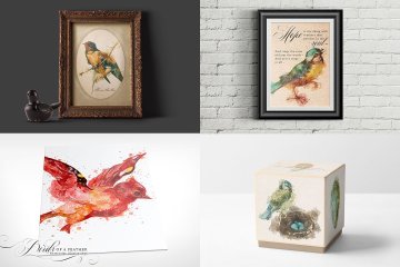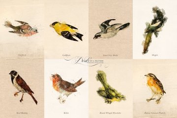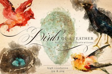 复古水彩鸟羽插画元素 Birds-of-a-Feather-