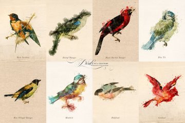 图穷联素材库 » 复古水彩鸟羽插画元素 Birds-of-a-Feather-
