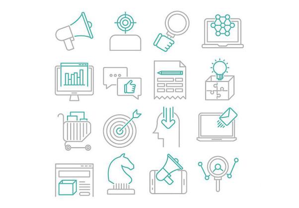 图穷联素材库 » 16个营销推广商场购物打折宣传矢量图标集Marketing Icons