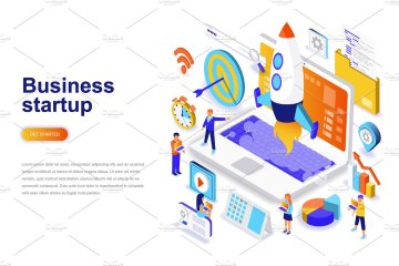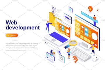 等距概念扁平化风格网站着陆页设计插画模板合集 Isometr