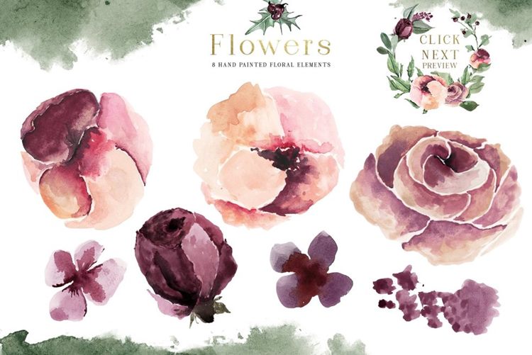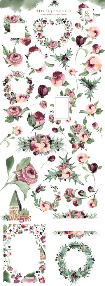 介绍一个全新的水彩剪贴画集 - 梅花圣诞节 - 由Creativeqube设计。