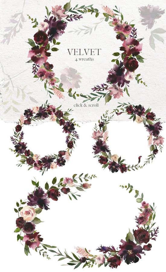 图穷联素材库 » 优雅精致手绘水彩花卉剪贴画 Velvet-Watercolo