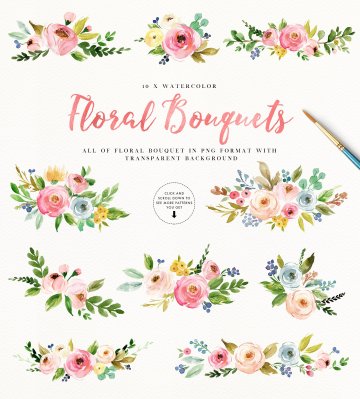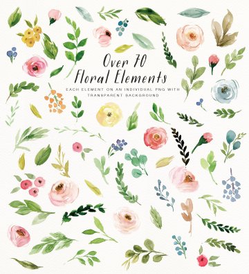 这是从水彩设计工具包中提取的迷你包装,如果您只是为您的项目需要一些美丽的花朵,这个迷你包将是您的完美选择。