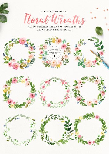 图穷联素材库 » 浪漫水彩花卉插画设计套装 Watercolor-Romant