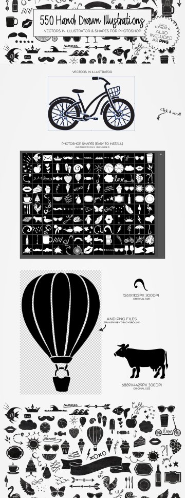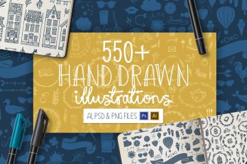 图穷联素材库 » 550+手绘矢量插画图案550-Hand-Drawn-Ill