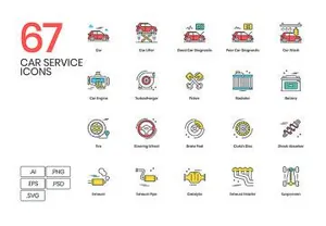 汽车行业服务维修保养汽车工业矢量图标集Car Service Icons