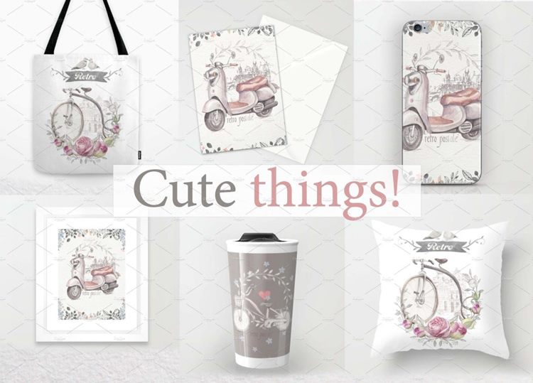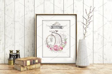 图穷联素材库 » 优雅文艺风自行车与玫瑰手绘插画元素 Bicycles-and
