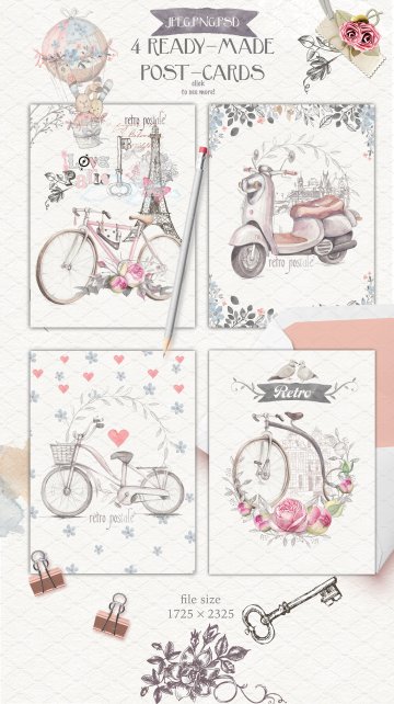 8个PNG元件[自行车和明信片]