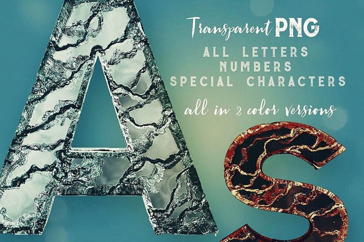 图穷联素材库 » 时尚高端3D立体破裂的玻璃质感的数字英文字体(png)cra