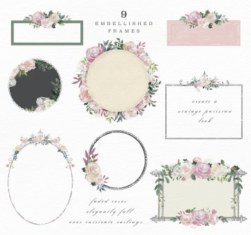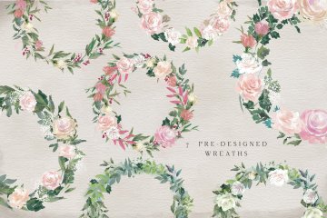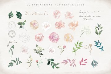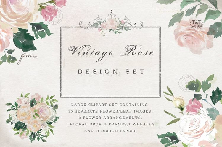 图穷联素材库 » 复古手绘水彩玫瑰花卉设计素材 Flower-Clipart-