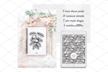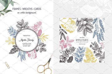 图穷联素材库 » 美丽的手绘植物素描矢量图形 Myrtle-Plants-Co
