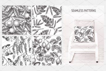 4 EPS + 4 JPG + 4 AI文件 - 4种无缝模式,包括茶树,番石榴,美fe和桉树。
