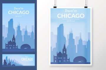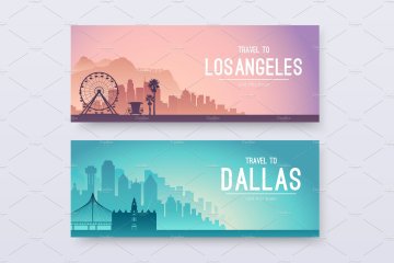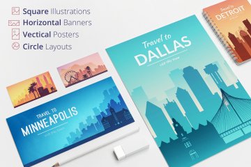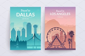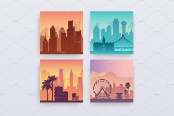 图穷联素材库 » 美国标志性建筑城市风景矢量集合USA Cities Land