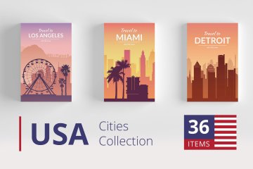 美国标志性建筑城市风景矢量集合USA Cities Land