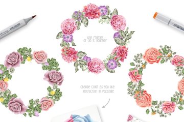 水彩马克笔花卉插画素材 Flower-Marker-Coll