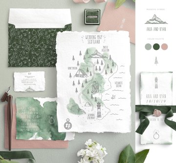 图穷联素材库 » 创意文艺风格婚礼邀请函水彩元素设计素材Wedding-Map