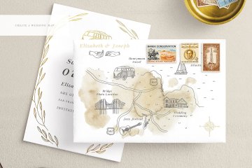 创意文艺风格婚礼邀请函水彩元素设计素材Wedding-Map
