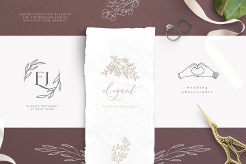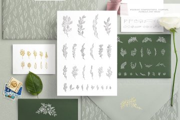 这些元素非常适合创建婚礼品牌或徽标。或者,如果您突然需要装饰您的房间或创建一个婚礼邀请。添加这个美丽的手绘元素和花卉,以创建一个明信片。
