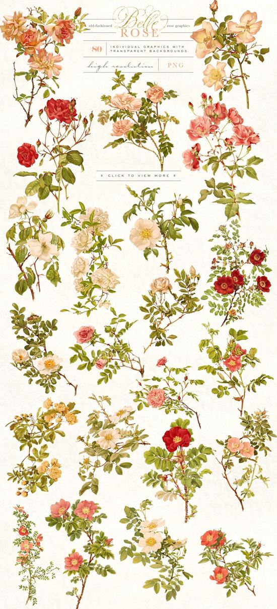 图穷联素材库 » 复古手绘水彩玫瑰花卉设计素材 Belle-Rose-Anti